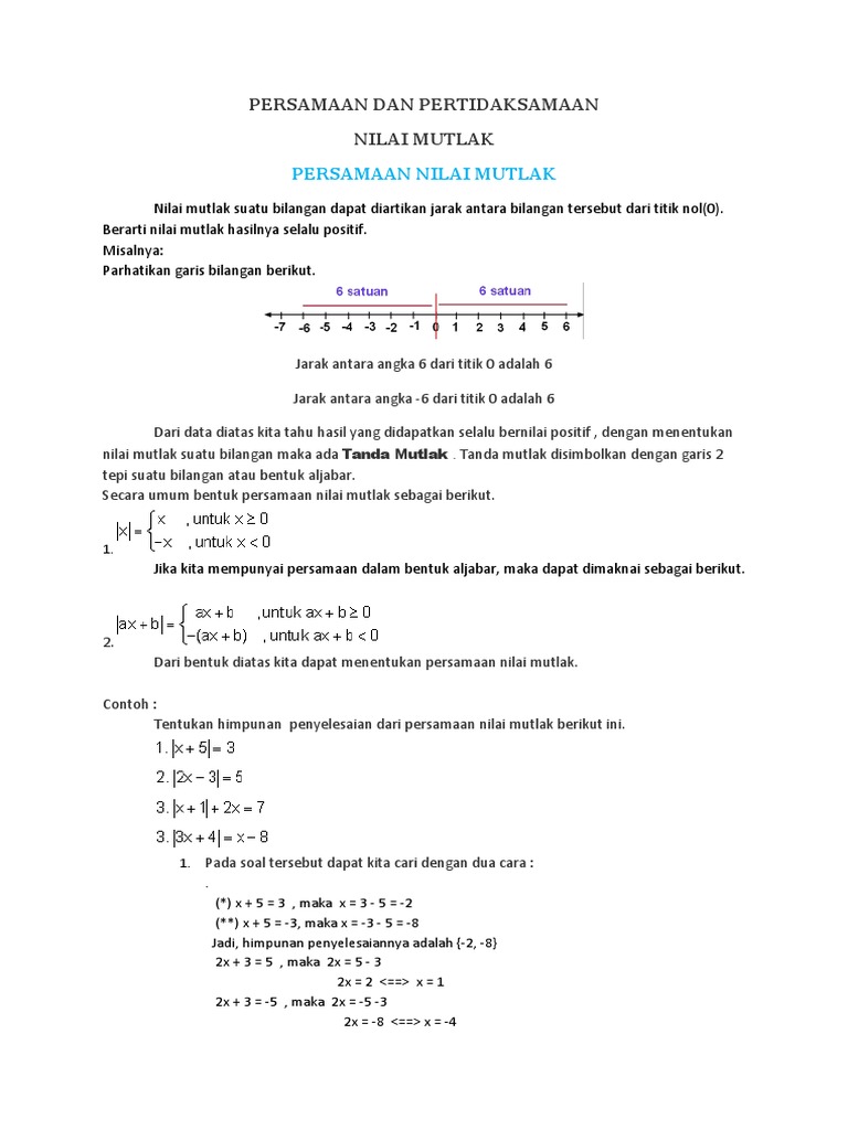 Semoga bermanfaat dan dapat dijadikan referensi untuk belajar. Berikut disediakan sejumlah soal & pembahasan terkait persamaan nilai mutlak untuk menambah pemahaman terhadap materi yang bersangkutan. Sifat-sifat nilai mutlak : Contoh Soal Bentuk-Bentuk persamaan nilai mutlak di atas dapat diselesaikan sebagai berikut.